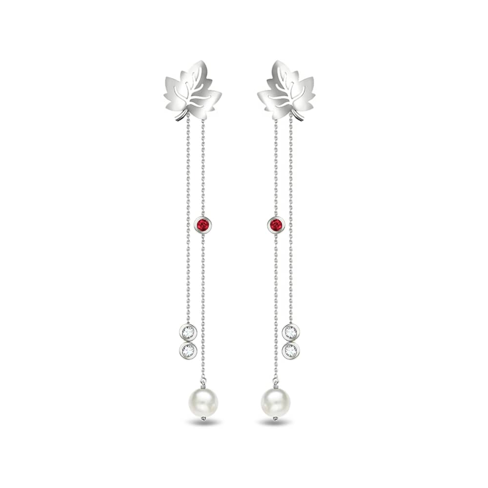 Maple leaf Pearl, Ruby and Diamond dangle Earrings in Gold. Made with 6mm natural pearls, Red Ruby and diamond and on real solid gold, the diamond earrings can be customized to your choice of white, yellow or rose gold. The beautiful earrings are hand picked, and part of our limited edition earrings collection, that features solitaire stud earrings, dangle earrings, and hoop earrings. Inspired with love, the diamond earrings make for perfect gift for any occasion. If you are looking for valentine gift, birthday gift, anniversary gift, bridesmaid gift, or just about any other special occasion, the beautiful and affordable real diamond earrings will make her fall in love at the very first sight. Your satisfaction is most important for us. All the orders come with 30 days full refund policy starting the day the order is delivered to you.