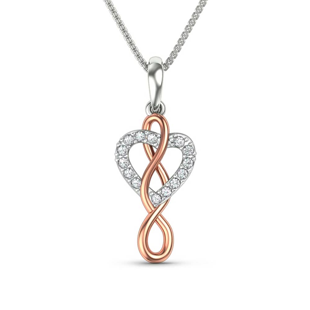 Interlinked Heart Infinity Diamond Pendant. Made with .10 carat real natural diamond and on real solid gold, the handmade pendant necklace can be customized to your choice of white, yellow or rose gold. The layered pendant can be stacked with multiple pendant very easily. Made with real diamond and on real gold, this beautiful minimalist diamond pendant necklace for women will please her at the very first sight. Made with love, the diamond solitaire handmade pendant necklace is both affordable and uniquely beautiful at the same time. Your satisfaction is most important for us. All the orders come with 30 days full refund policy starting the day the order is delivered to you.