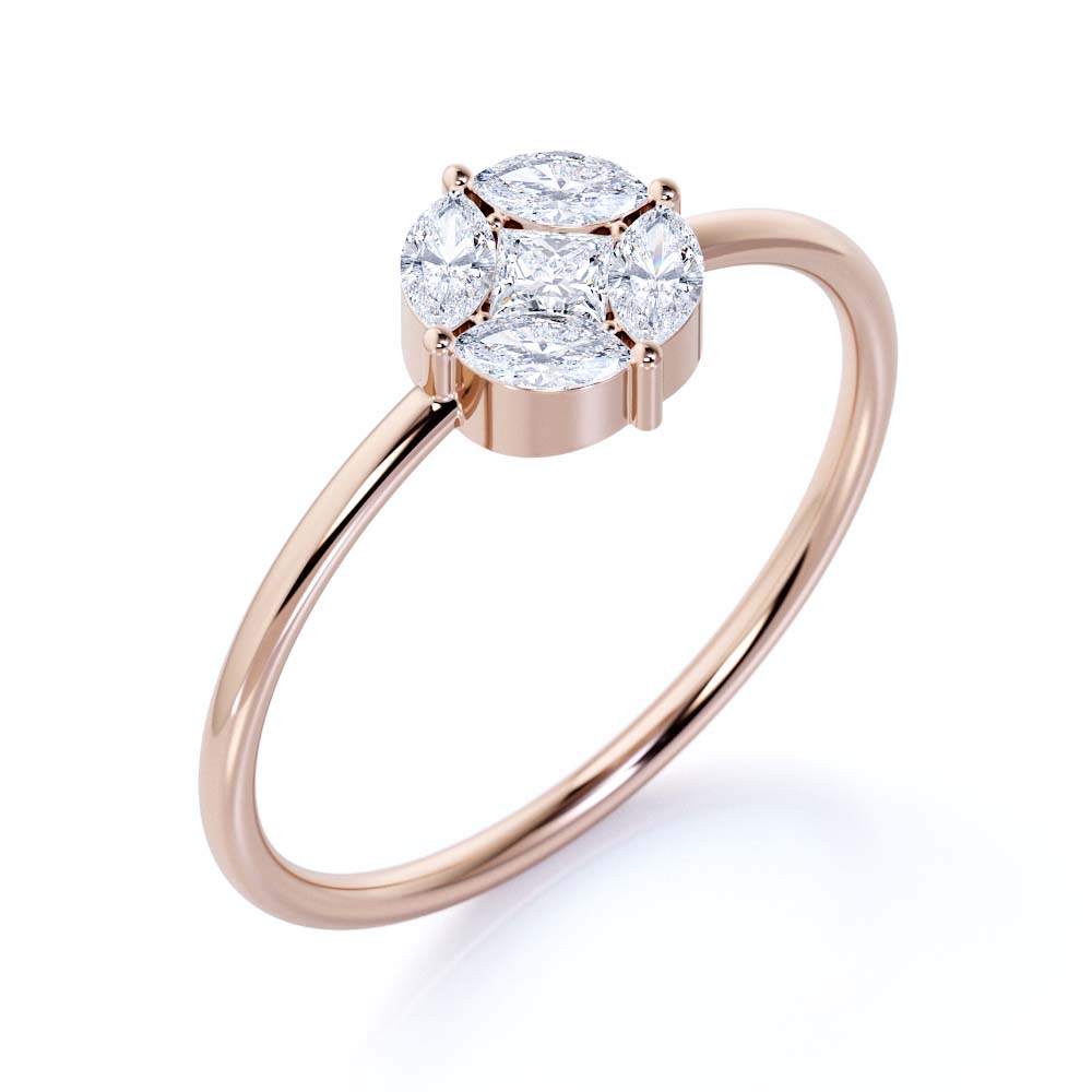 Dainty Promise Diamond Minimalist Ring for Women in Gold. Made with 0.15 carat real natural marquise cut and round shape diamond and on real solid gold, the handmade engagement promise ring band can be customized to your choice of white, yellow or rose gold. The thin band gold ring is petite and dainty, perfect for everyday wear. The minimalist ring design is hand crafted for elegance and beauty. Made with real diamond and on real gold, this beautiful minimalist ring will please her at the very first sight. Your satisfaction is most important for us. All the orders come with 30 days full refund policy starting the day the order is delivered to you.